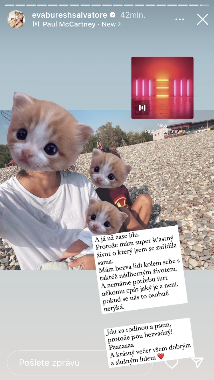Burešová na fotce pózuje s Tristanem v náručí a společnost jim dělá i Nathaniel, který je určitě z nového brášky nadšený. Fotka je následně okomentována slovy: „Mám super krásný život, který jsem si zařídila sama.“