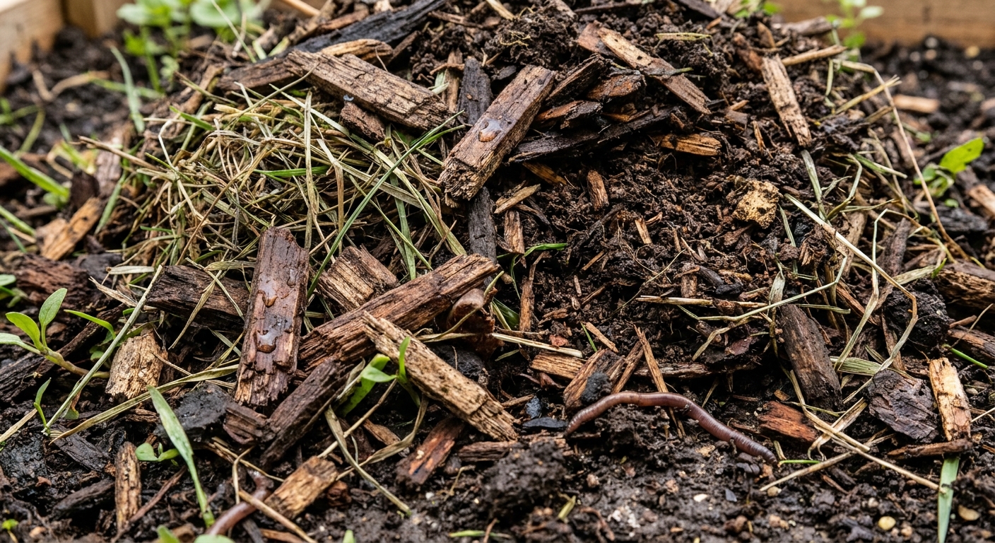 Základ tvoří několik běžných složek. Každá z nich má svou roli, a dohromady to začne fungovat jako celek. Nejčastěji jde o kompost, dřevní štěpku a třeba posekanou trávu nebo listí.