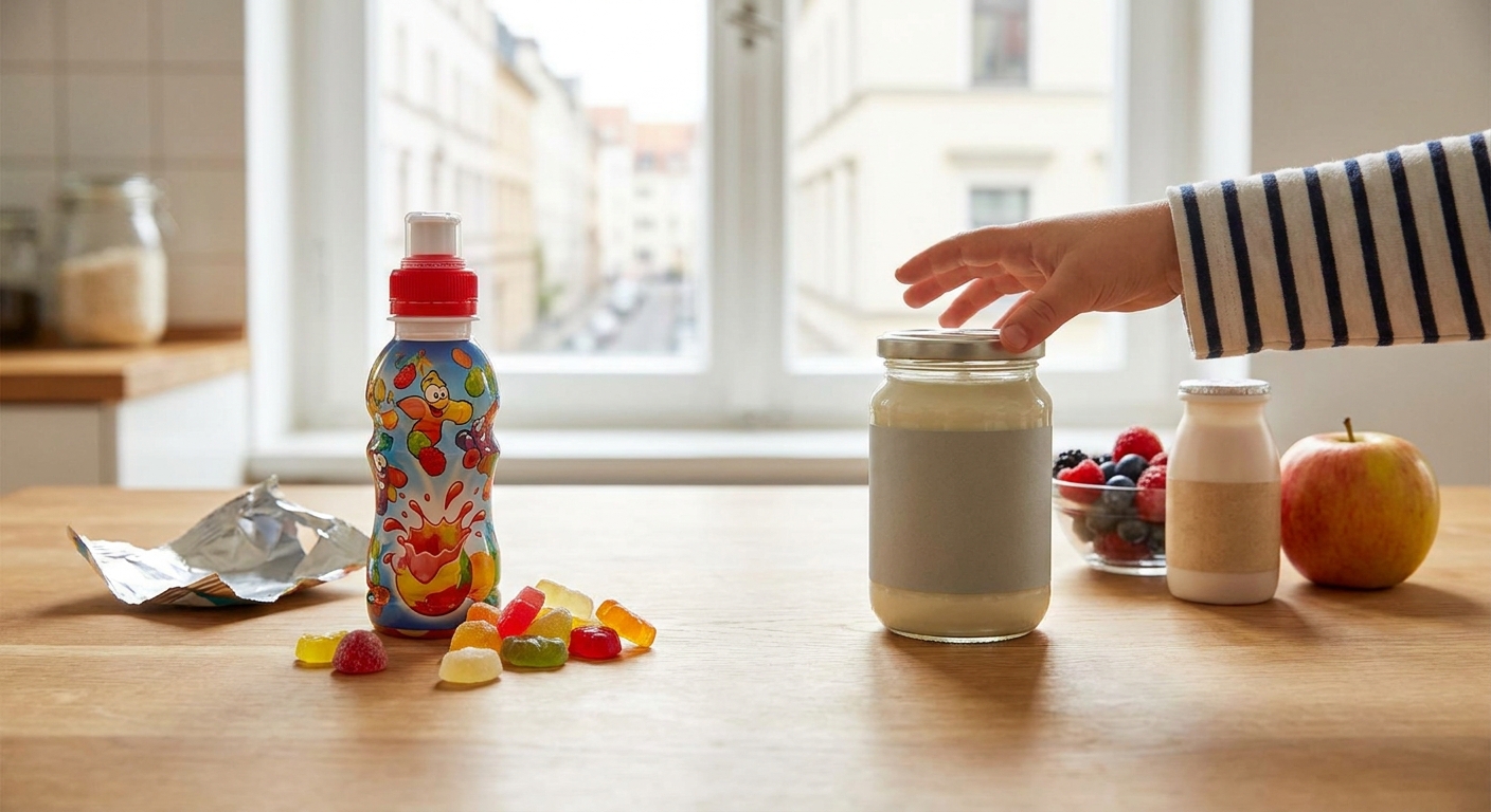 Nejjednodušší řešení je vlastně docela obyčejné. Bílý jogurt nebo kefír bez přidaného cukru. Když dítě chce sladší chuť, dá se přidat čerstvé ovoce, třeba banán nebo jahody. Kromě sladkosti přidá i vlákninu, která zpomalí vstřebávání cukru.