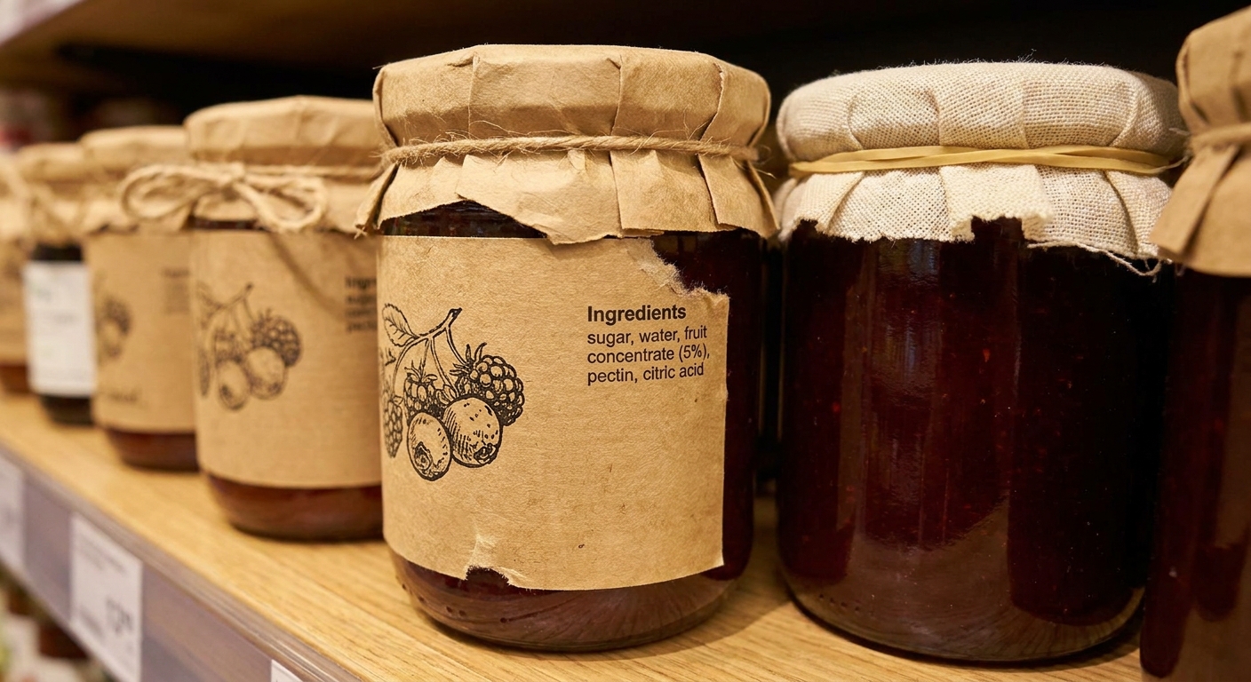 Sklenice která vypadá jako od babičky, ještě neznamená že uvnitř bude něco podobného. V regálu často vyhrává marketing nad realitou. A proto se vyplatí být o trochu víc pozorný, i když se vám zrovna nechce.