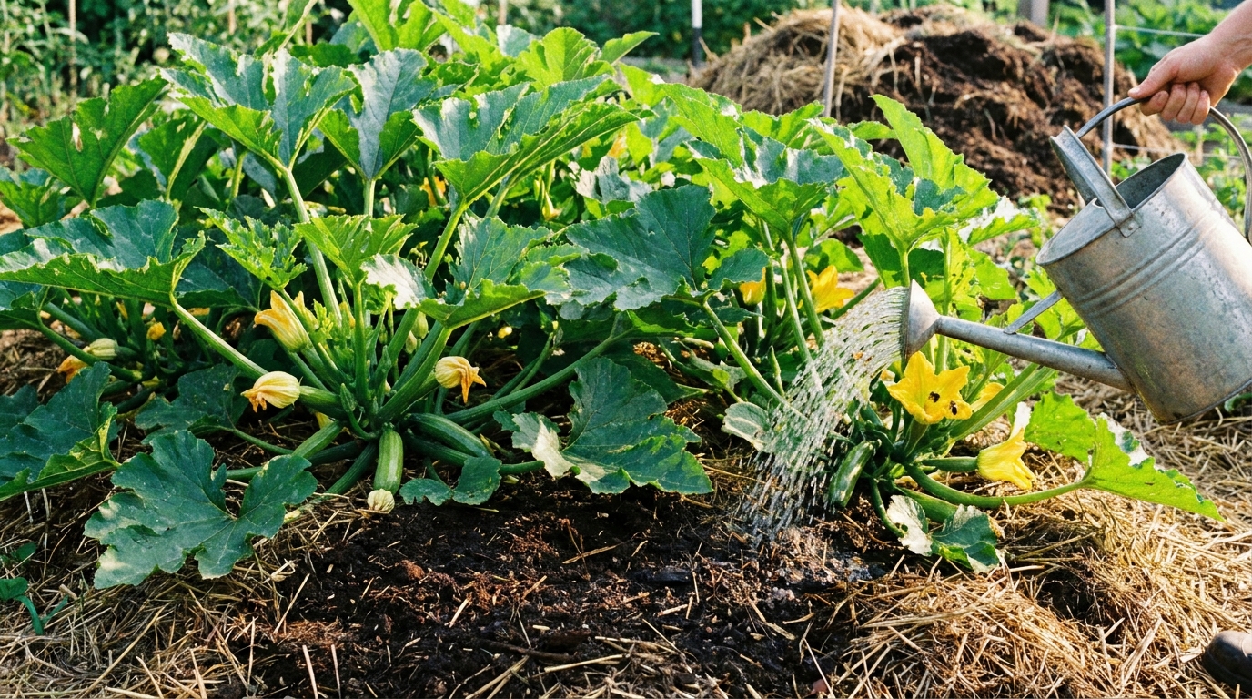 Zní to jednoduše, ale právě zálivka bývá kámen úrazu. Cuketa potřebuje vodu dostat hlouběji ke kořenům, ne jen lehké kropení na povrchu. Kořeny sahají klidně několik desítek centimetrů dolů.